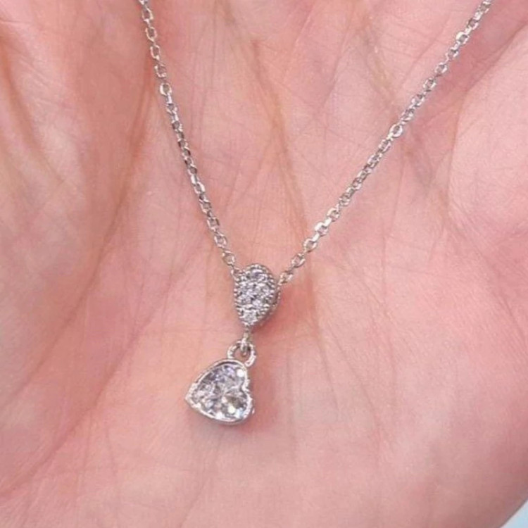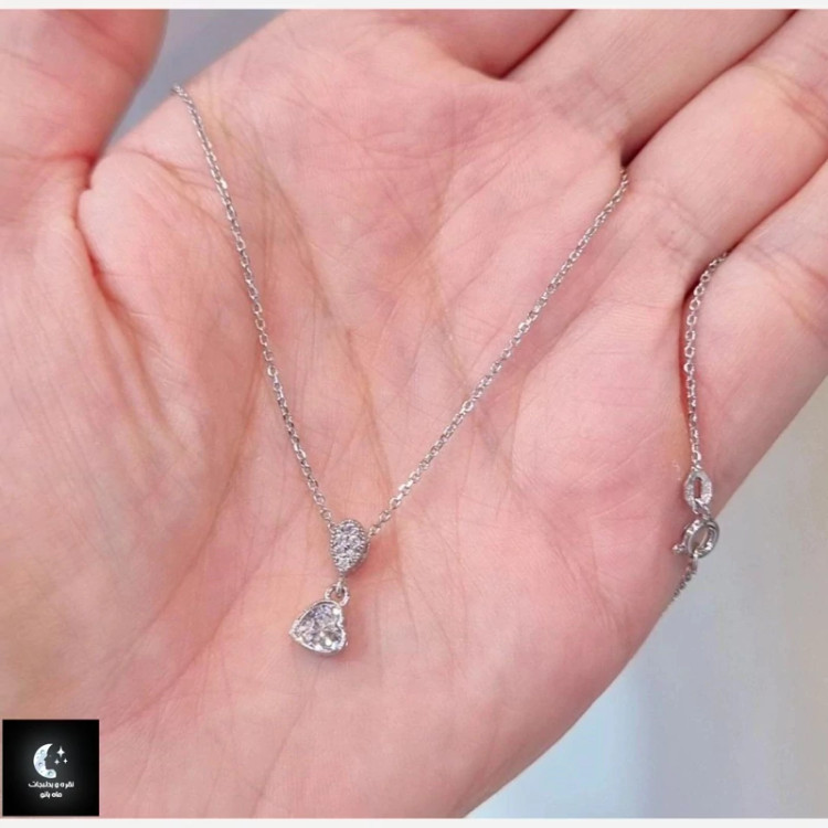 گردنبند نقره زنانه قلب مینیمال عیار 925و آبکاری طلا سفید