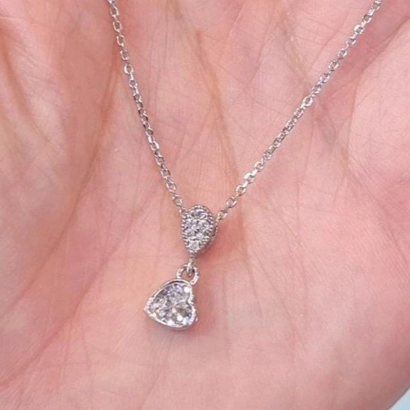 گردنبند نقره زنانه قلب مینیمال عیار 925و آبکاری طلا سفید