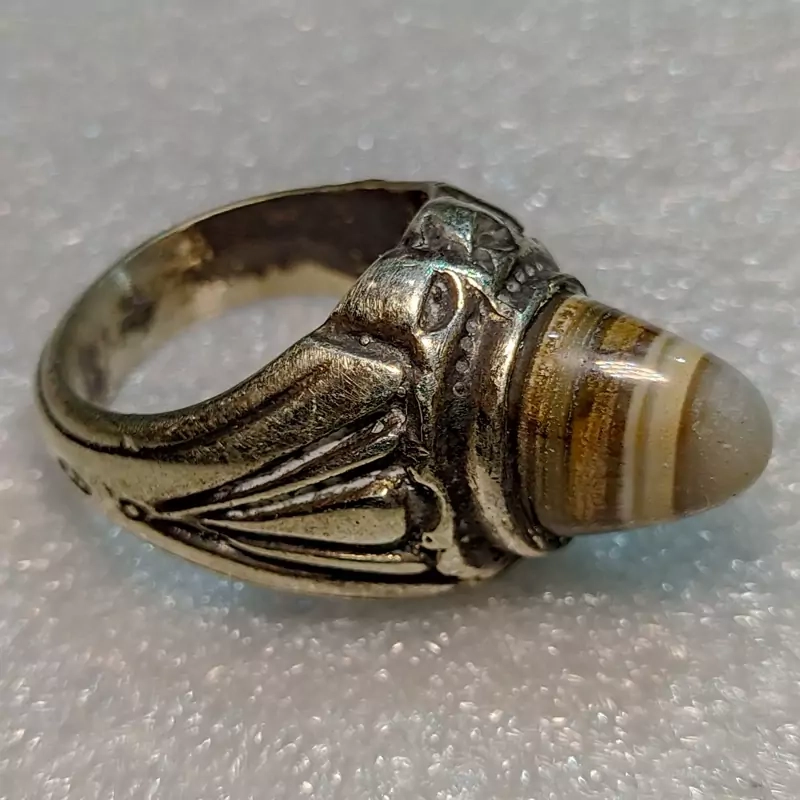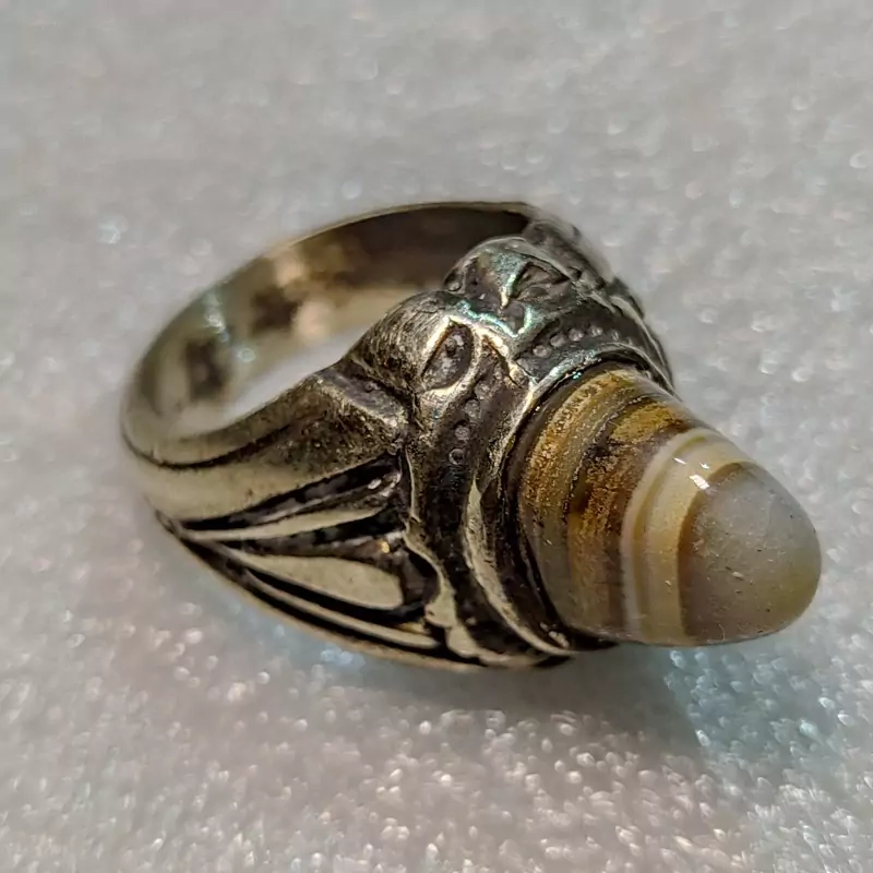 انگشتر قواره دار عقیق سلیمانی مخروطی منظم پرگاری