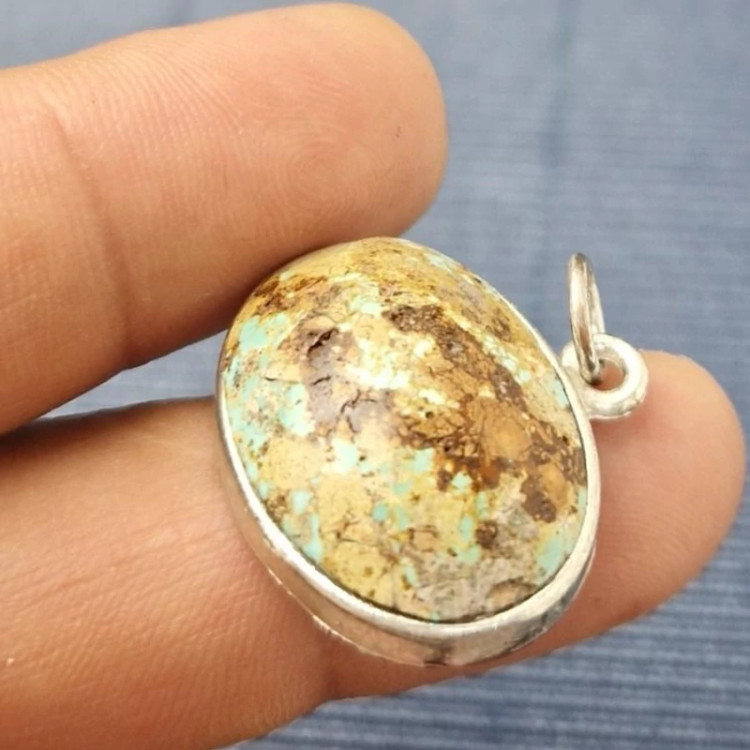 آویز فیروزه مغز سنگی نیشابور بزرگ و دامله ابعاد 25 در 18