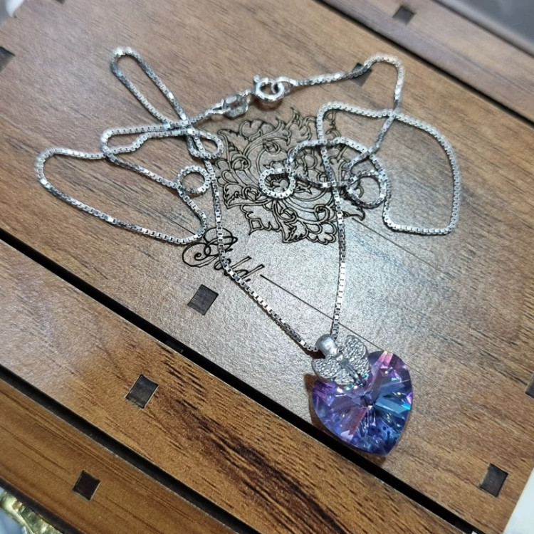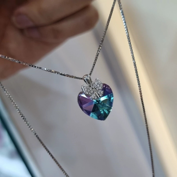 گردنبند نقره زنانه قلب و پروانه سواروسکی هفت رنگ ایتالیایی