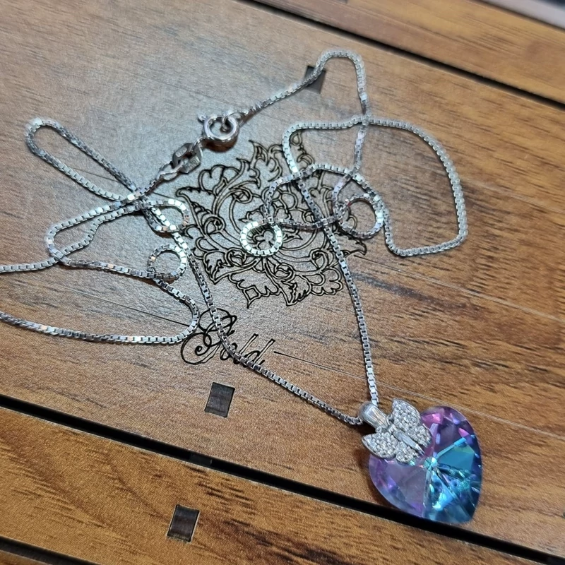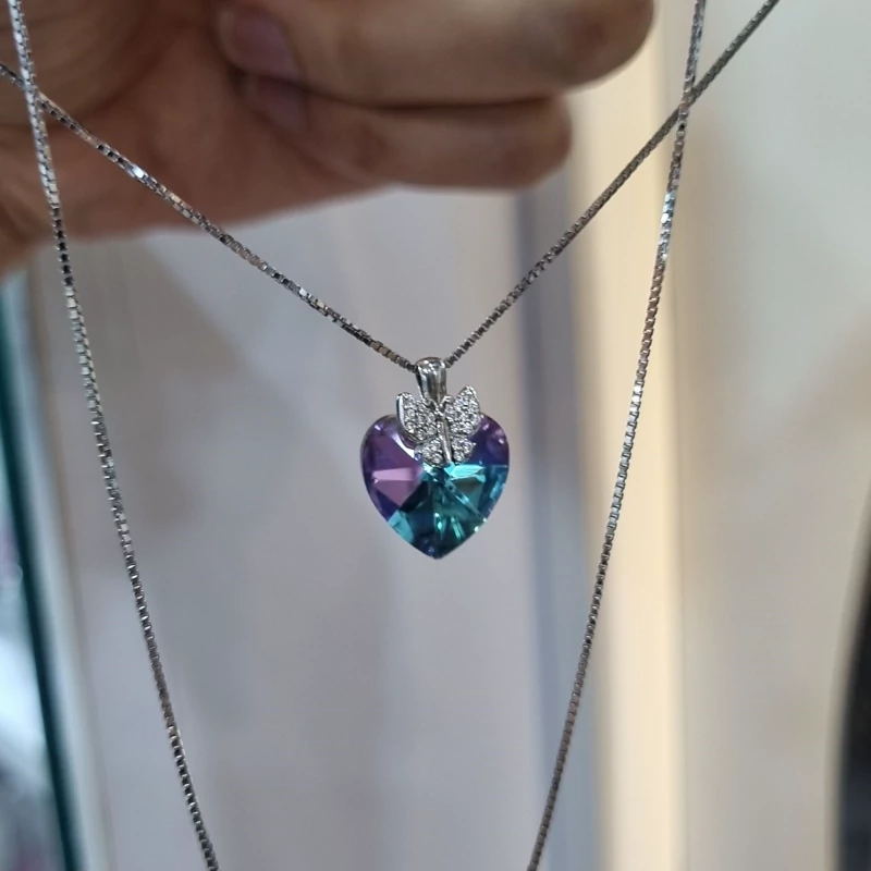 گردنبند نقره زنانه قلب و پروانه سواروسکی هفت رنگ ایتالیایی