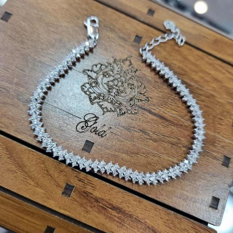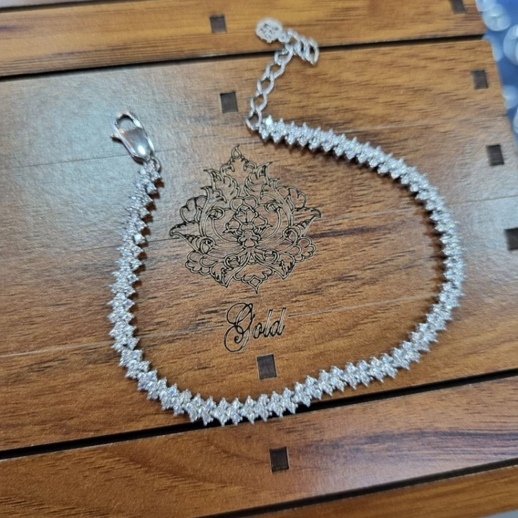 دستبند نقره زنانه میکروفول نگین عیار 925استاندارد آبکاری طلا سفید