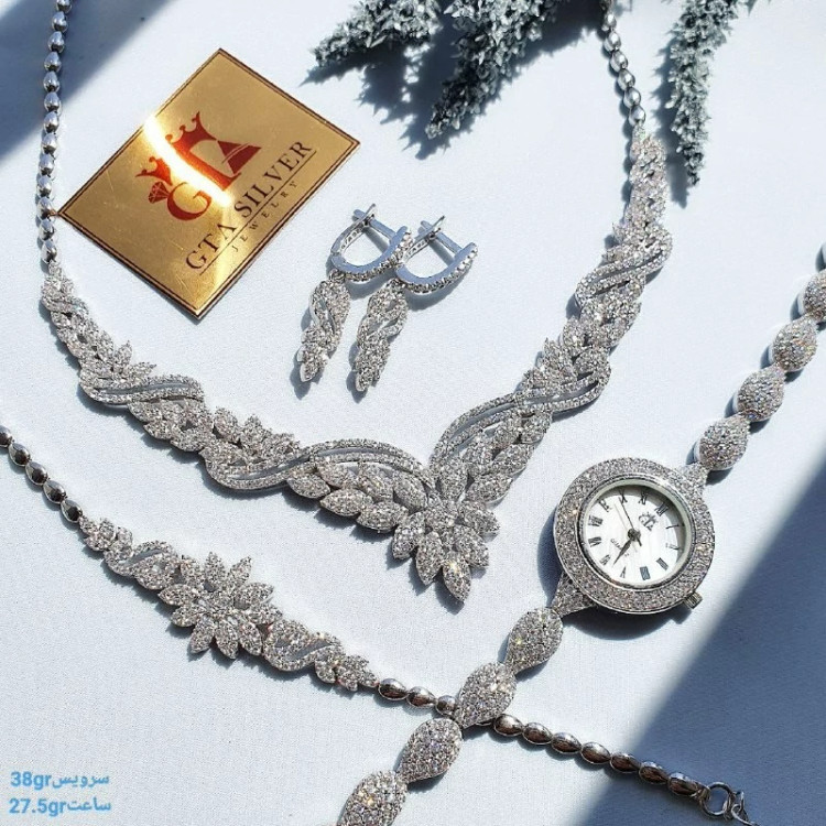 سرویس نقره زنانه عیار 925استاندارد بدون ریزش نگین ضد حساسیت با آبکاری طلا سفید