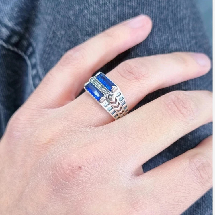 انگشتر نقره مردانه نگین آبی و مارگازیت شرکت مورات استانبول