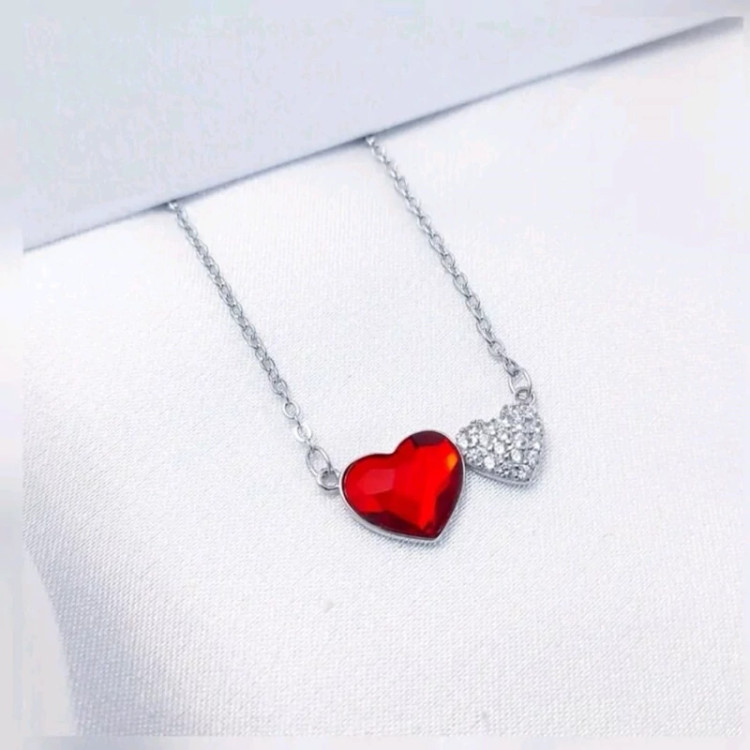 گردنبند نقره زنانه ایتالیایی طرح قلب قرمز سفید عیار 925و آبکاری طلا سفید ضد حساسیت