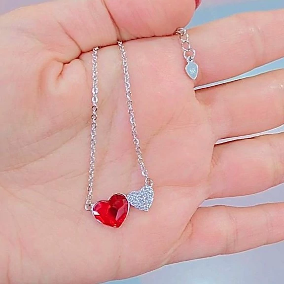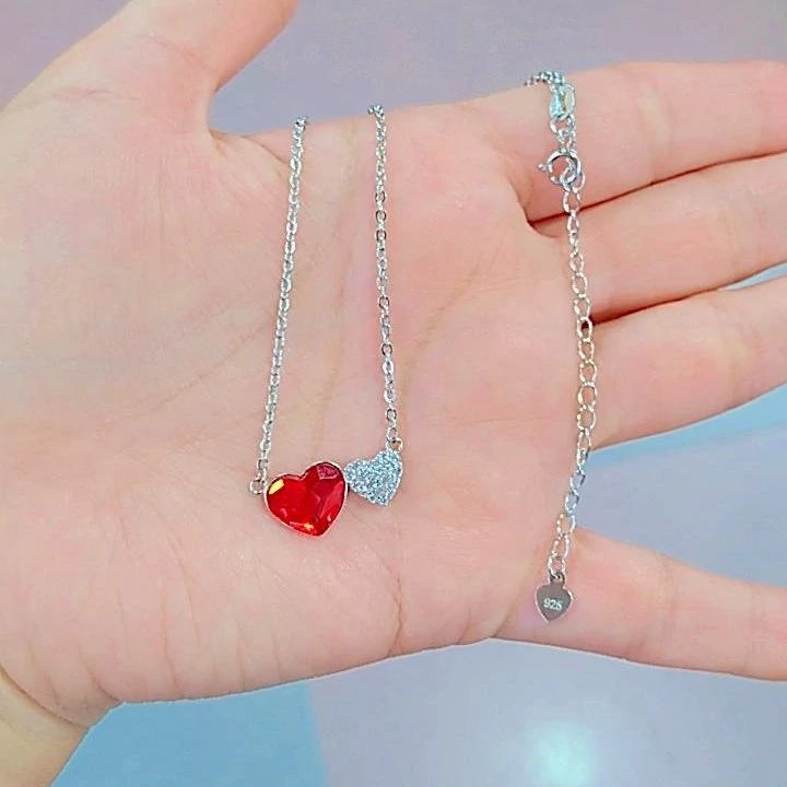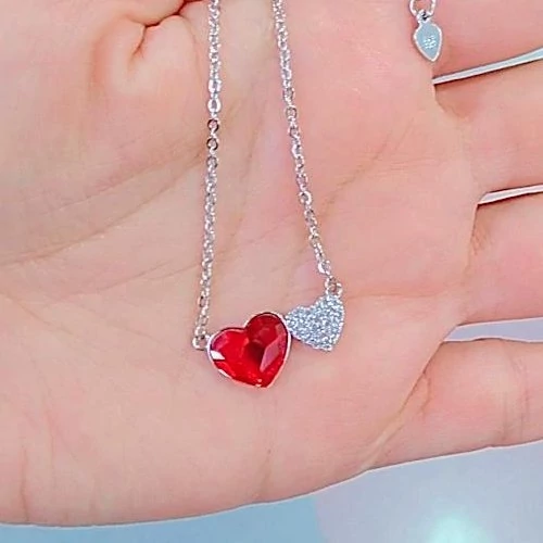 گردنبند نقره زنانه ایتالیایی طرح قلب قرمز سفید عیار 925و آبکاری طلا سفید ضد حساسیت