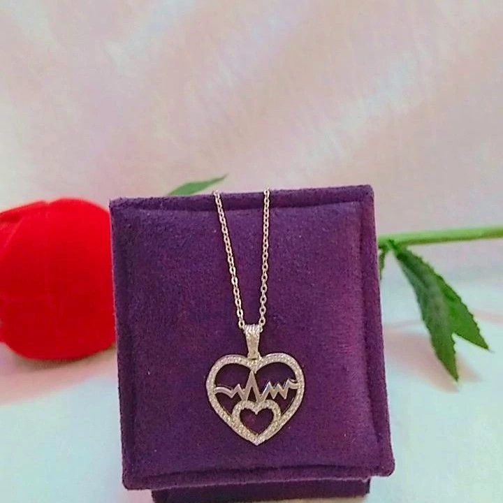 گردنبند نقره زنانه طرح ضربان قلب عیار 925با آبکاری طلا سفید بدون ریزش نگین ضد حساسیت