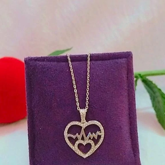 گردنبند نقره زنانه طرح ضربان قلب عیار 925با آبکاری طلا سفید بدون ریزش نگین ضد حساسیت