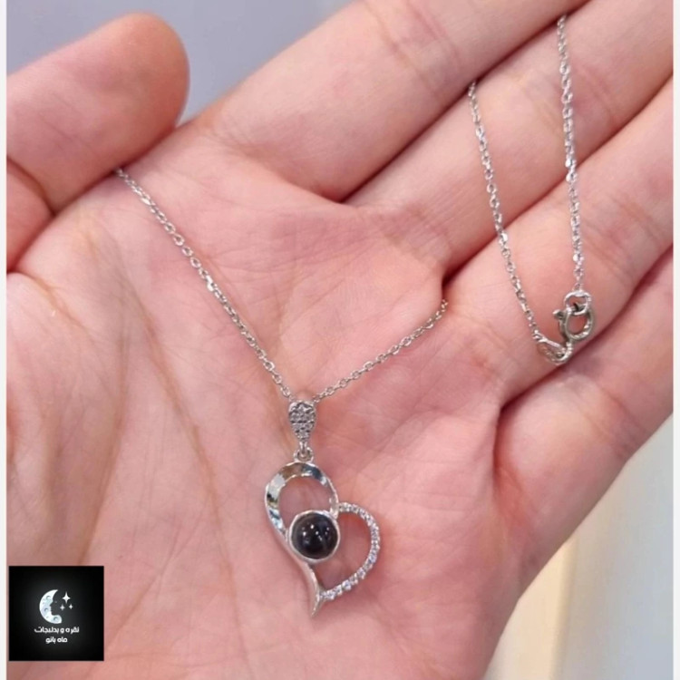 گردنبند نقره زنانه قلب و سنگ لاو باعیار 925 و آبکاری طلا سفید طول زنجیر 45 سانت