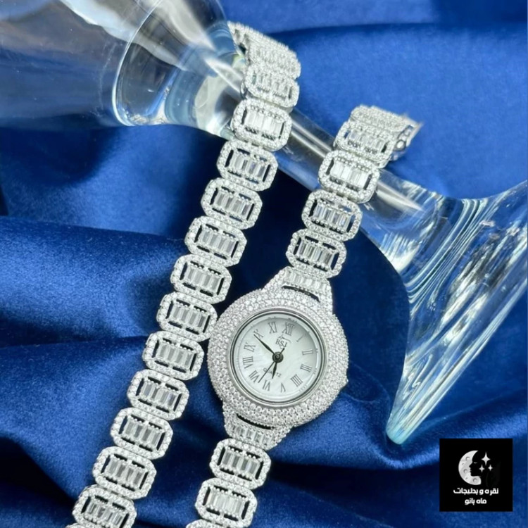 ست ساعت و دستبند نقره زنانه باعیار 925 و آبکاری طلا سفید موتور میوتای ژاپنی