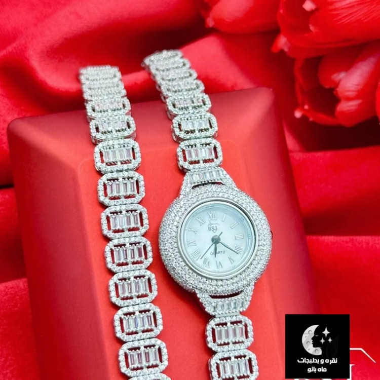 ست ساعت و دستبند نقره زنانه