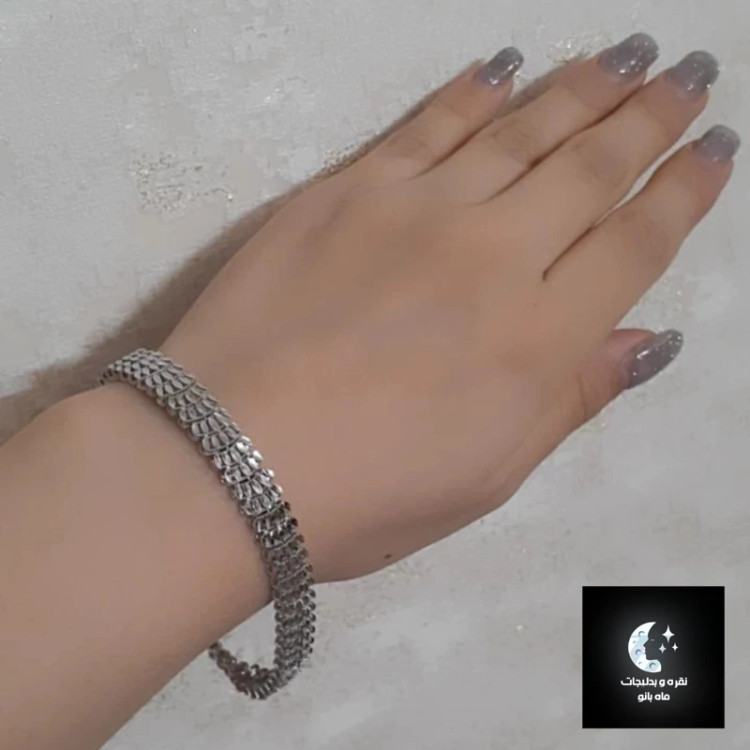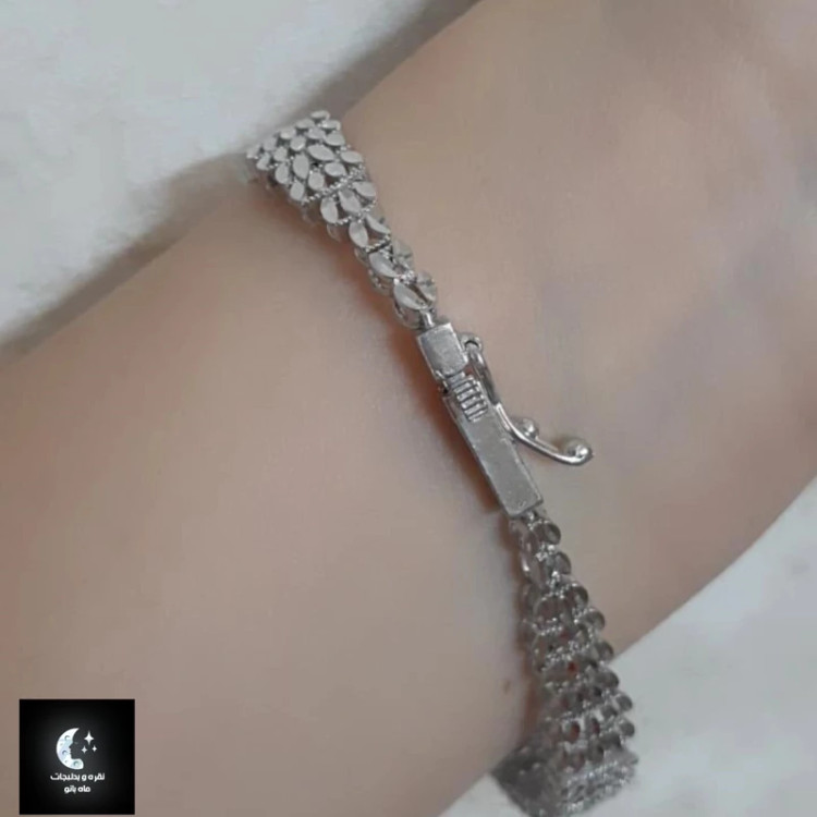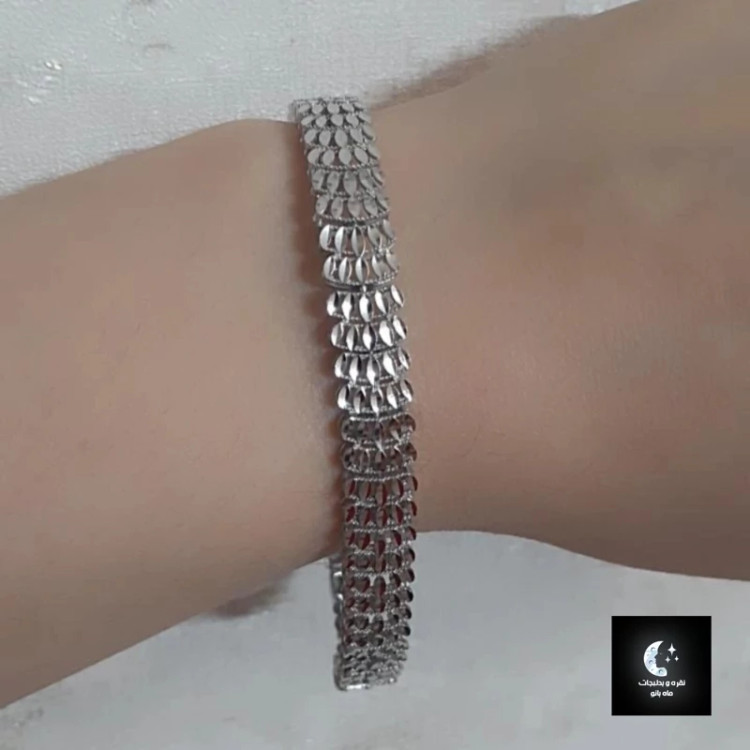 دستبند نقره زنانه تراش باعیار 925 و آبکاری طلا سفید بدون نگین