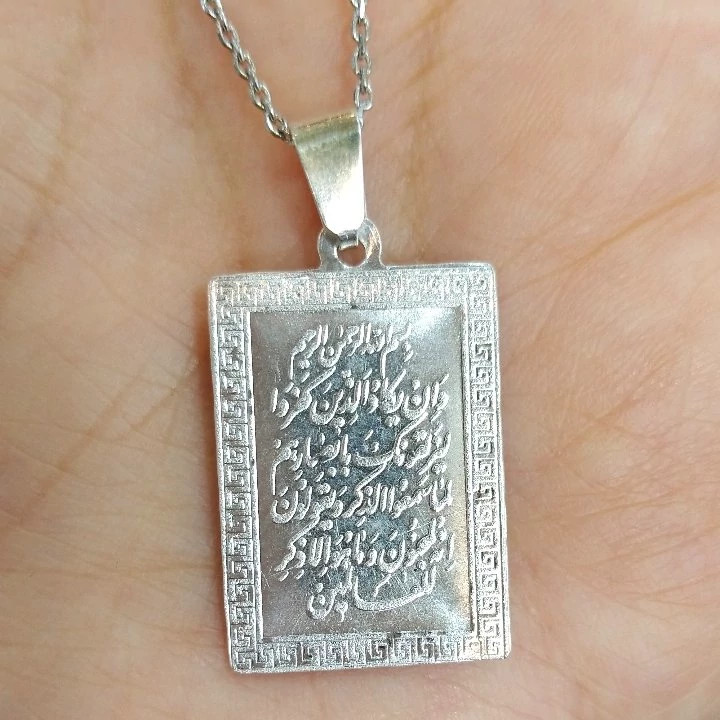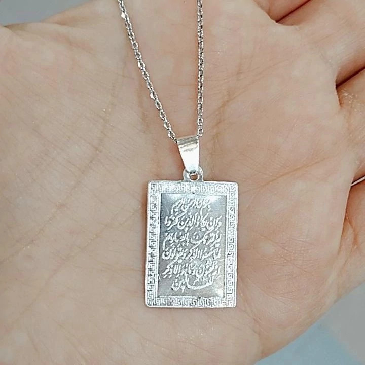 گردنبند وان یکاد نقره زنانه مستطیل عیار 925استاندارد ضد حساسیت