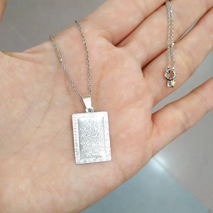 گردنبند وان یکاد نقره زنانه مستطیل عیار 925استاندارد ضد حساسیت