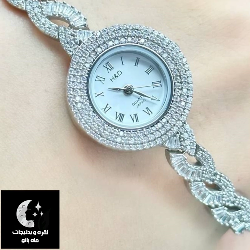 ساعت نقره زنانه صفحه گرد عیار 925 با آبکاری طلا سفید موتور میوتای ژاپن