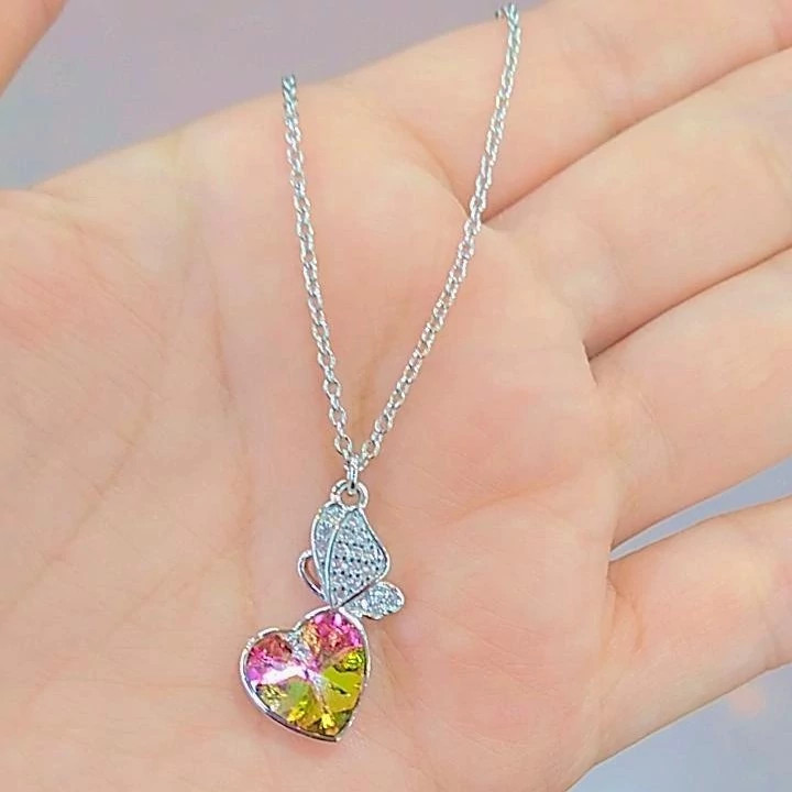 گردنبند پروانه و قلب سواروسکی نقره ایتالیا