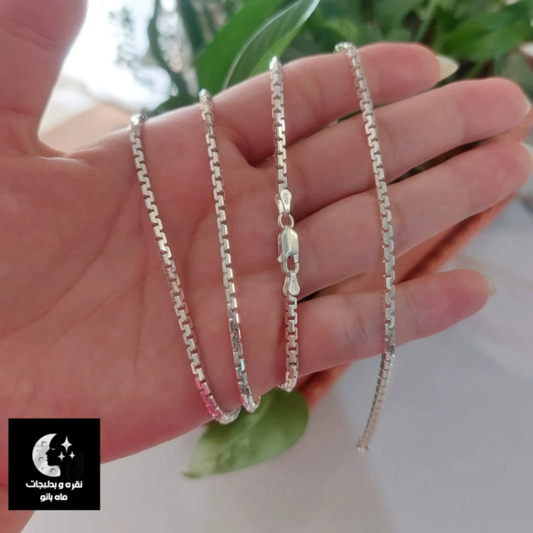ست دستبند و زنجیرنقره مردانه ونیزی ایتالیایی باعیار 925 و آبکاری طلا سفید ضخامت 2 میل 4 طرفه