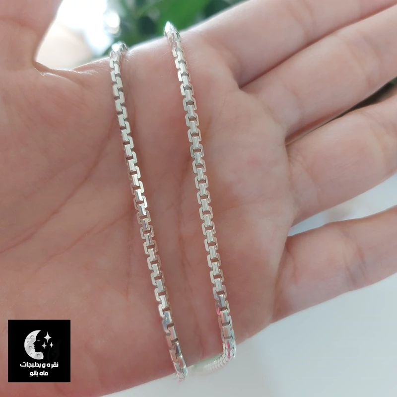 ست دستبند و زنجیرنقره مردانه ونیزی ایتالیایی باعیار 925 و آبکاری طلا سفید ضخامت 2 میل 4 طرفه