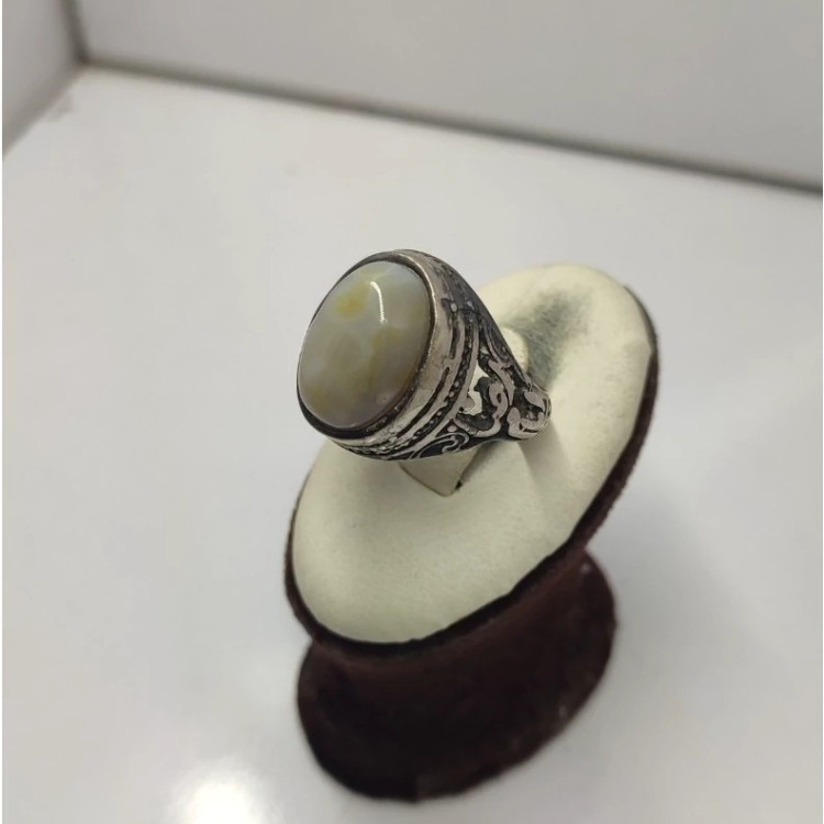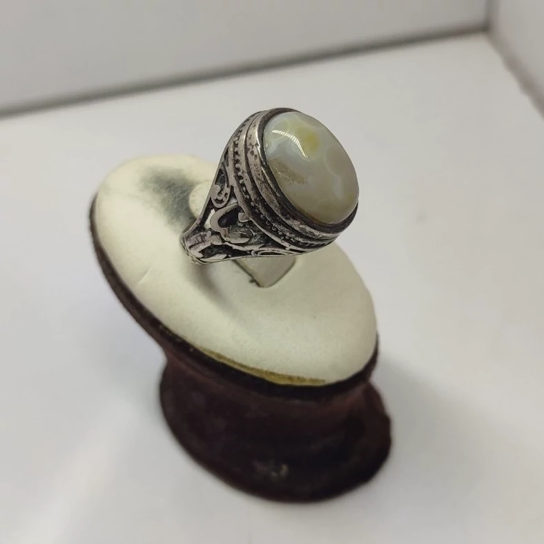 انگشتر مردانه عقیق باباقوری هزارچشم زایشی فعال لامه بسیار زیبا و بکر با رکاب نقره زیبا با عیار متوسط آلیاژ 740 با وزن کلی 9.50 گرم