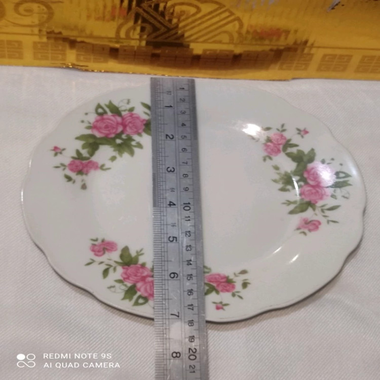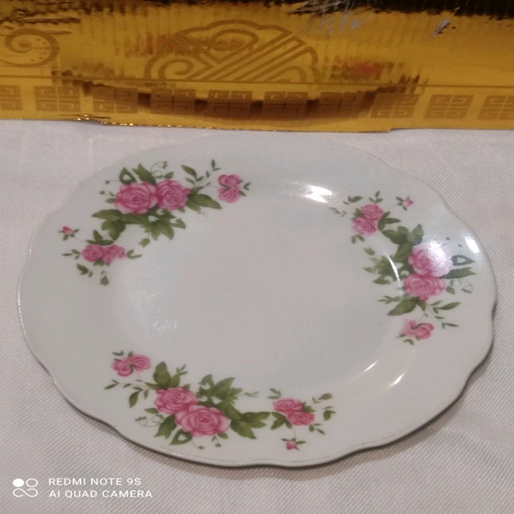 بشقاب میوه خوری گلسرخی قدیمی ساخت چین با مارک چین متعلق به دوره قبل انقلاب تعداد یک عدد جهت دکور یا کسری سرویس