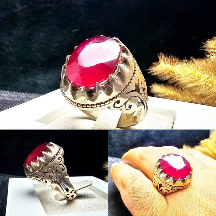 انگشتر نقره مردانه یاقوت قرمز آفریقایی اصلی معدنی طبیعی رکاب دست ساز