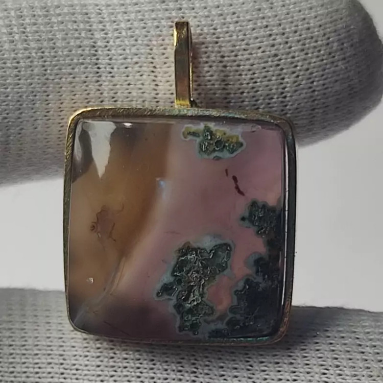 آویز بسیار زیبا و خاص عقیق شجر بنفش قاب مربع برنجی