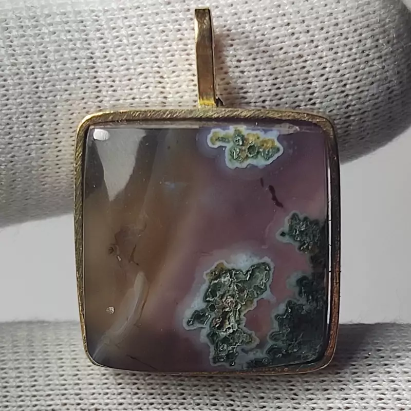 آویز بسیار زیبا و خاص عقیق شجر بنفش قاب مربع برنجی