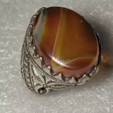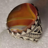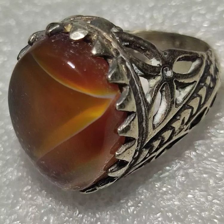 انگشتر جزع حکیمی یمن تراش قطعی رگه دار خونبند
