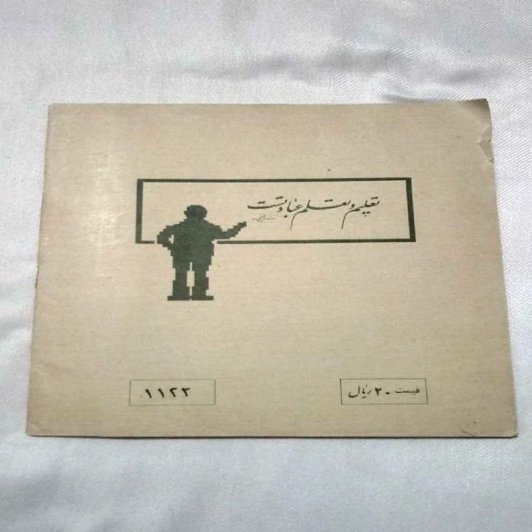 دفتر 40 برگ متعلق به دهه 60 با تصویر پشت دفتر (تعلیم و تعلم عبادت است)