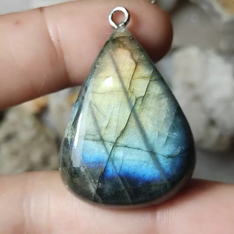 آویز اشکی لابرودرایت هفت رنگ پرطاوسی پر تلالو درخشان و بینظیر
