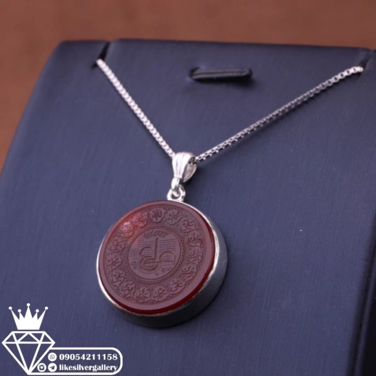 گردنبند عقیق سرخ خطی نقش عین علی 14 معصوم 12.8 گرم ارسال رایگان