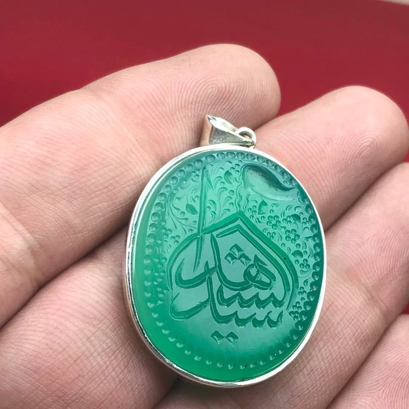 گردنبندنقره مردانه عقیق سبز حکاکی یاسیدالشهداقاب نقره دستسازعیار925 بدون زنجیر