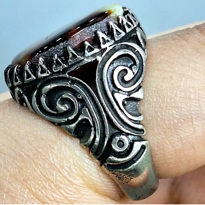 رکاب نقره عیار متوسط آلیاژ 860 درصد استاندارد اتحادیه با ضمانت ده ساله طرح سیاه قلم