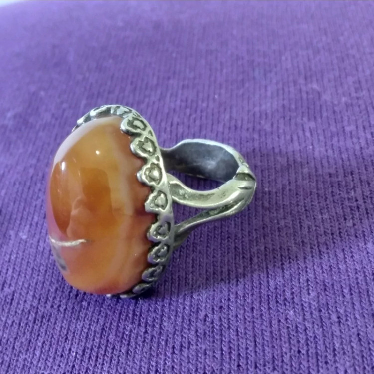 انگشتر خون بند عبدالرزاق بقرانی چشم دار یمنی با رکاب زیبای نقره عیار 74 با وزن کلی 12 گرم