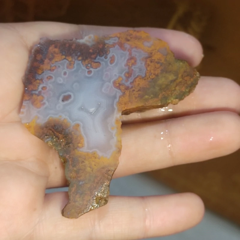 اسلب 50 گرمی سنگ عقیق شجر پاییزی سه قلعه یک طرفه نیم پولیش شده با ابعاد 60 در 40 و عمق حدود 17 میل در ضخیم ترین قسمت مناسب تراش یا دکور یا ساخت جواهرات و مناسب کلکسیون و علاقه مندان به سنگ