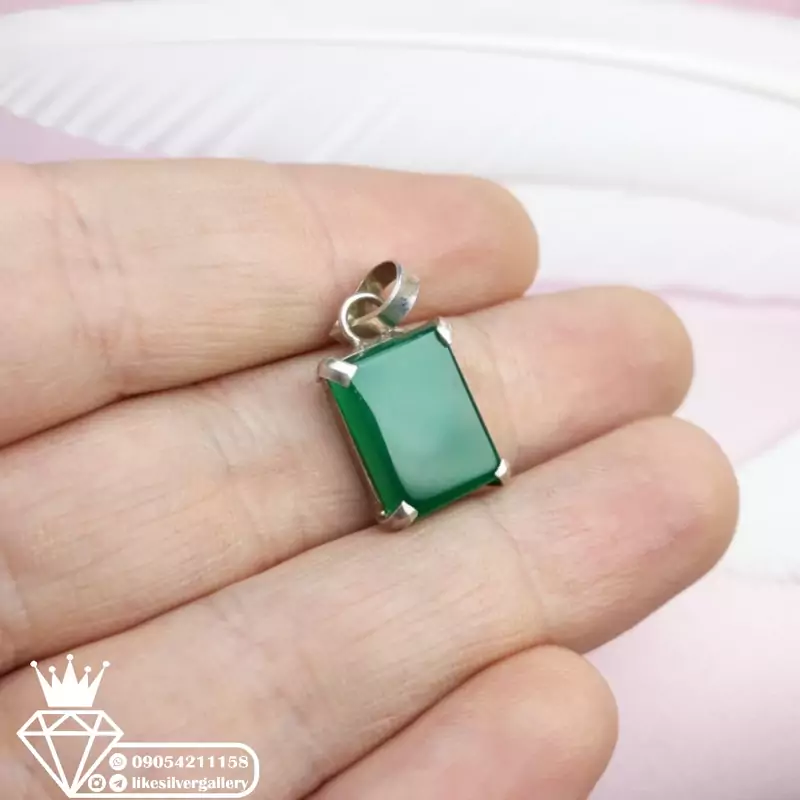 گردنبندزنانه عقیق سبزنقره عیار925