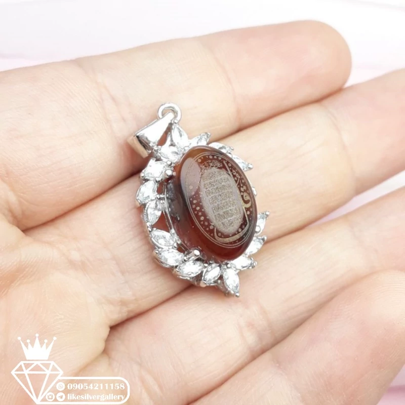 گردنبندزنانه نقره عقیق یمنی اصل خط لیزرحکاکی چهارقل روکش رادیوم