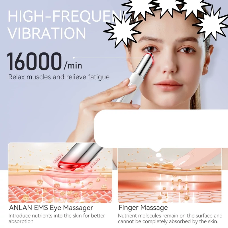 کرم دور چشم دو قدرتی: از نظر پوستی تست شده، استفاده دستی از کرم دور چشم فقط 22.4٪ را جذب می کند. اپلیکاتور جلوه کانتور چشم ANLAN به لطف ارتعاشات ملایمی که به نفوذ و جذب بهتر 43.6% کمک می کند، اثربخشی کرم شما را بهبود می بخشد.