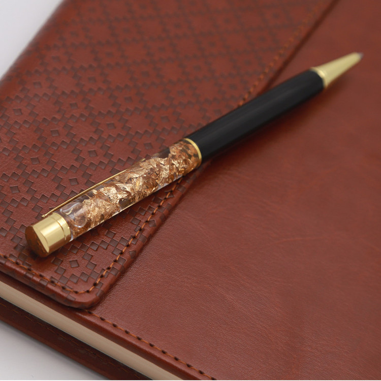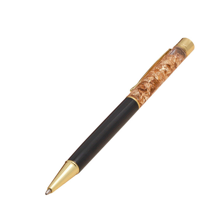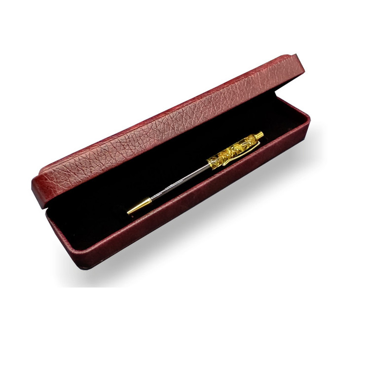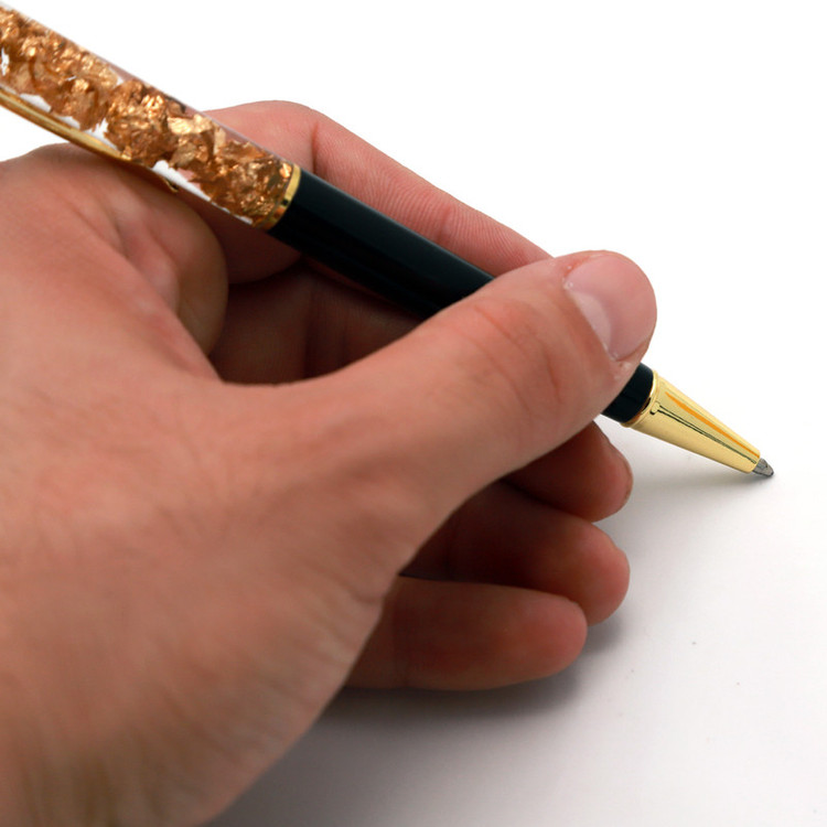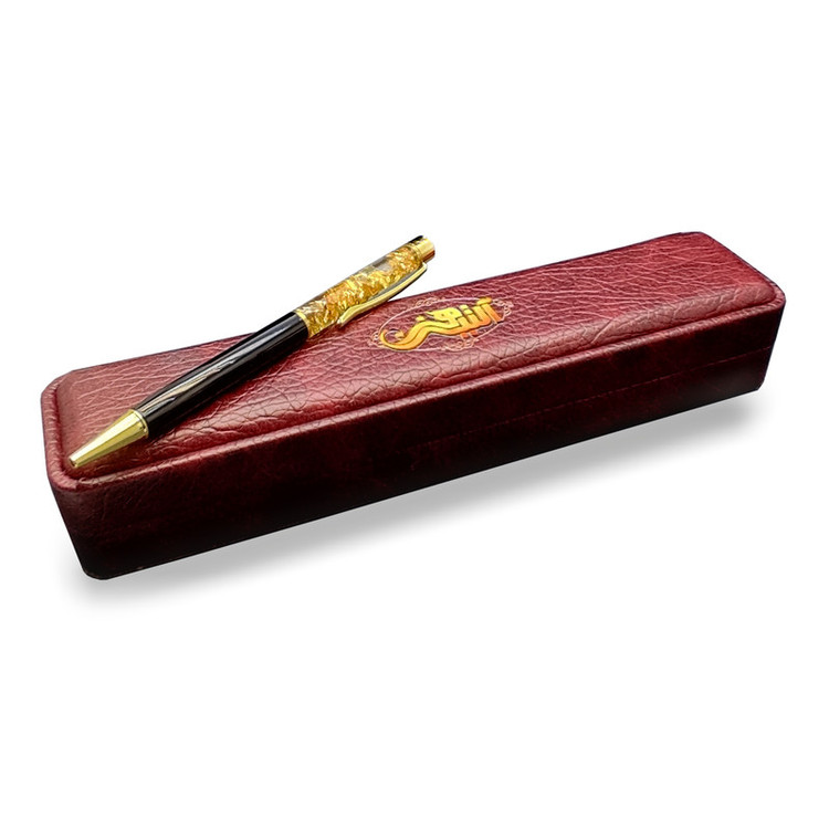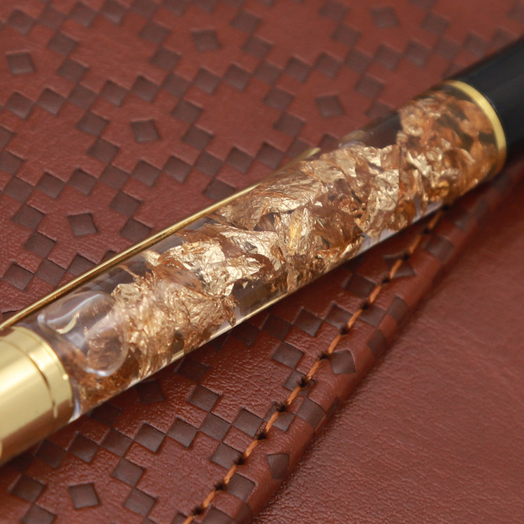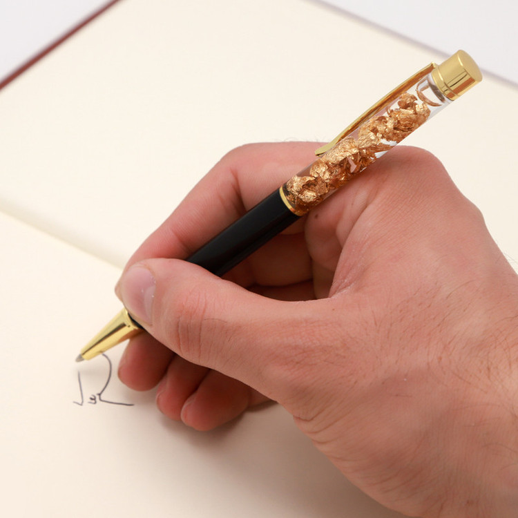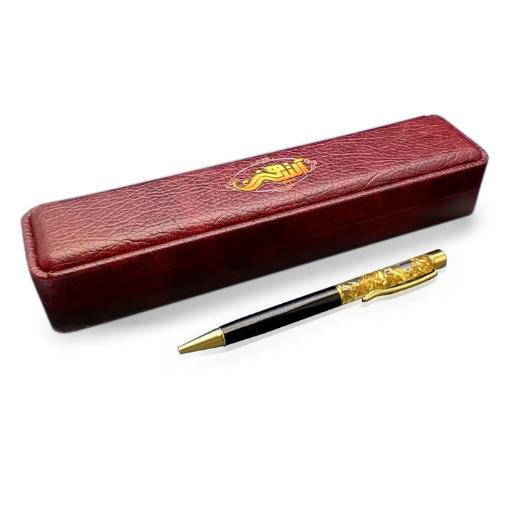 سری و نوک و گیره این خودکار از روکش طلا بوده و داخل شیشه نیز از فویل طلا استفاده شده است.