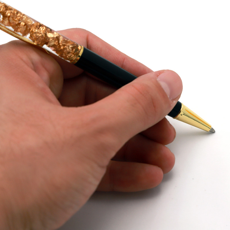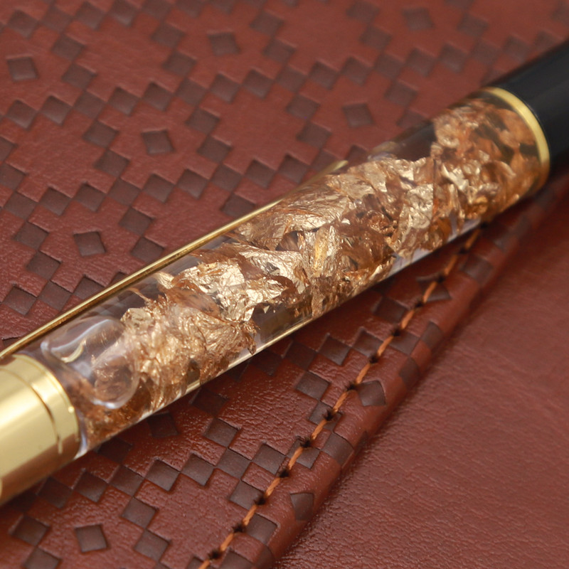 سری و نوک و گیره این خودکار از روکش طلا بوده و داخل شیشه نیز از فویل طلا استفاده شده است. روکش طلا 24 عیار