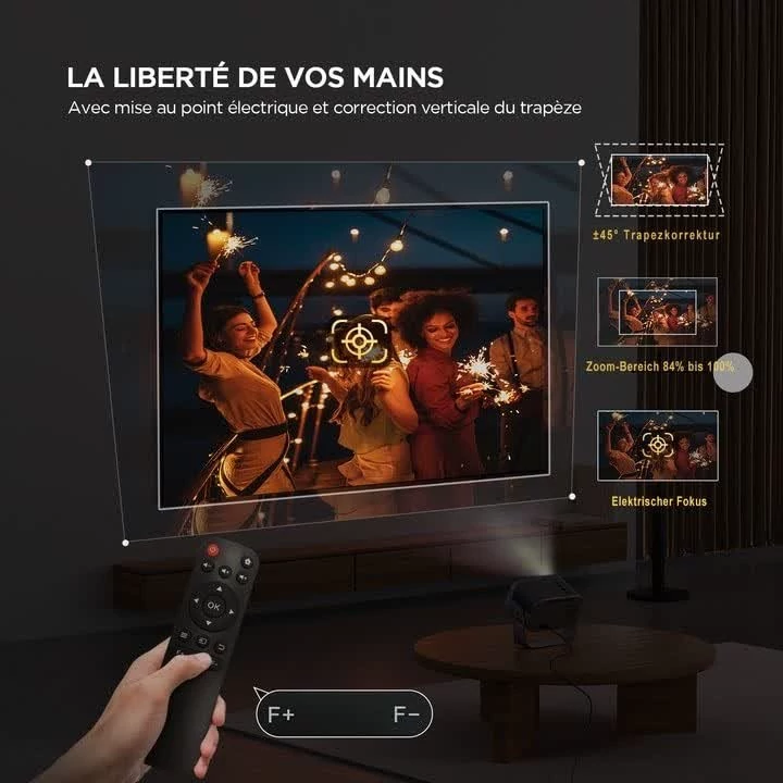 🏜 فوکوس الکتریکی و عملکرد تصحیح و زوم کیستون: پروژکتور E18 مجهز به فوکوس موتوری و تصحیح کیستون عمودی الکترونیکی ±45 درجه است. فقط کافی است چند ثانیه کنترل از راه دور را فشار دهید تا تصویری مربعی و واضح داشته باشید. با عملکرد بزرگنمایی پروژکتور، می توانید آزادانه اندازه تصویر را به اندازه صفحه بازی خود بدون حرکت دادن پروژکتور تنظیم کنید.
