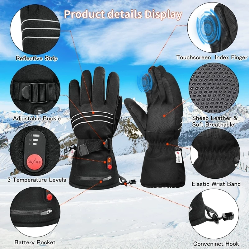 🔥 طراحی صفحه نمایش لمسی: انگشت شست و اشاره دستکش های گرمایش الکتریکی از PU رسانا با سنسور لمسی ساخته شده اند، بنابراین می توانید بدون درآوردن دستکش های گرمایشی، گوشی، تبلت و سایر دستگاه های هوشمند خود را به راحتی و با حساسیت کنترل کنید. سگک های قابل تنظیم مچ دست و بند کشی از برف یا هوای سرد جلوگیری می کند. نوار بازتابنده پشت دست نیز رانندگی در شب را ایمن تر می کند.