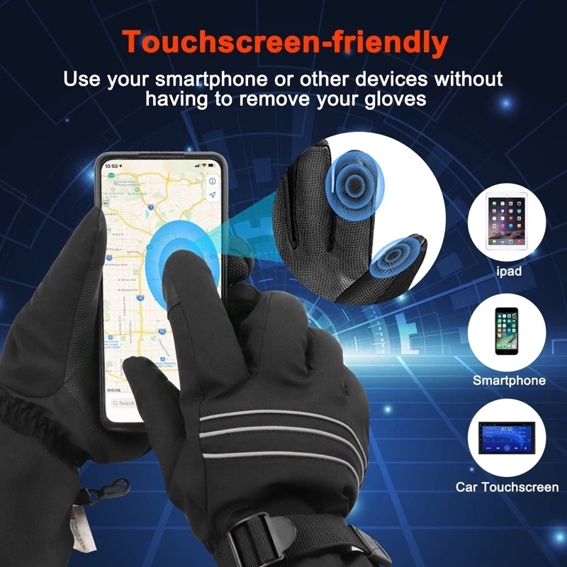 🔥 طراحی صفحه نمایش لمسی: انگشت شست و اشاره دستکش های گرمایش الکتریکی از PU رسانا با سنسور لمسی ساخته شده اند، بنابراین می توانید بدون درآوردن دستکش های گرمایشی، گوشی، تبلت و سایر دستگاه های هوشمند خود را به راحتی و با حساسیت کنترل کنید. سگک های قابل تنظیم مچ دست و بند کشی از برف یا هوای سرد جلوگیری می کند. نوار بازتابنده پشت دست نیز رانندگی در شب را ایمن تر می کند.