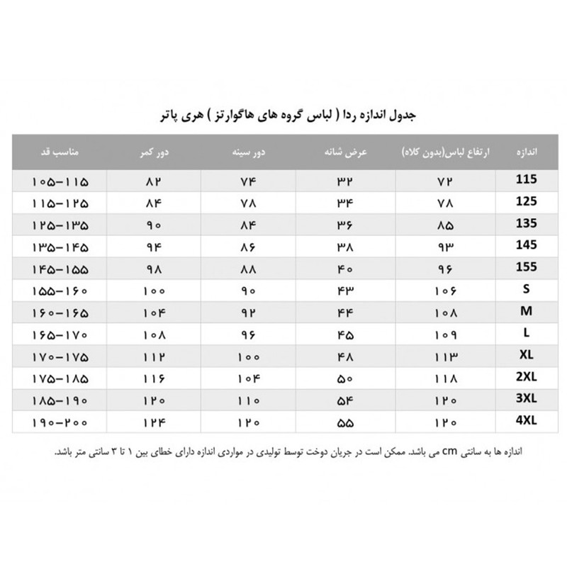 سایز 155 مناسب کودکان حدود 11 تا 12 ساله ارتفاع لباس بدون کلاه: 96 عرض شانه : 40 دور سینه : 88 دور کمر : 98 مناسب قد: 145 تا 155