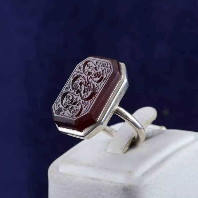 انگشتر نقره مردانه عقیق سرخ دستساز پشت بسته نقش علی مع الحق اصل