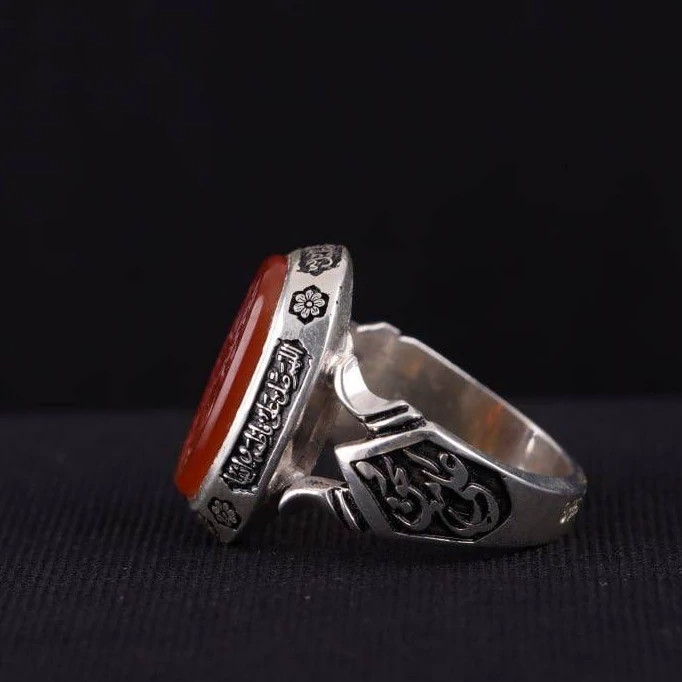 انگشتر نقره دستساز عقیق سرخ دو رنگ خراسانی قلمزنی