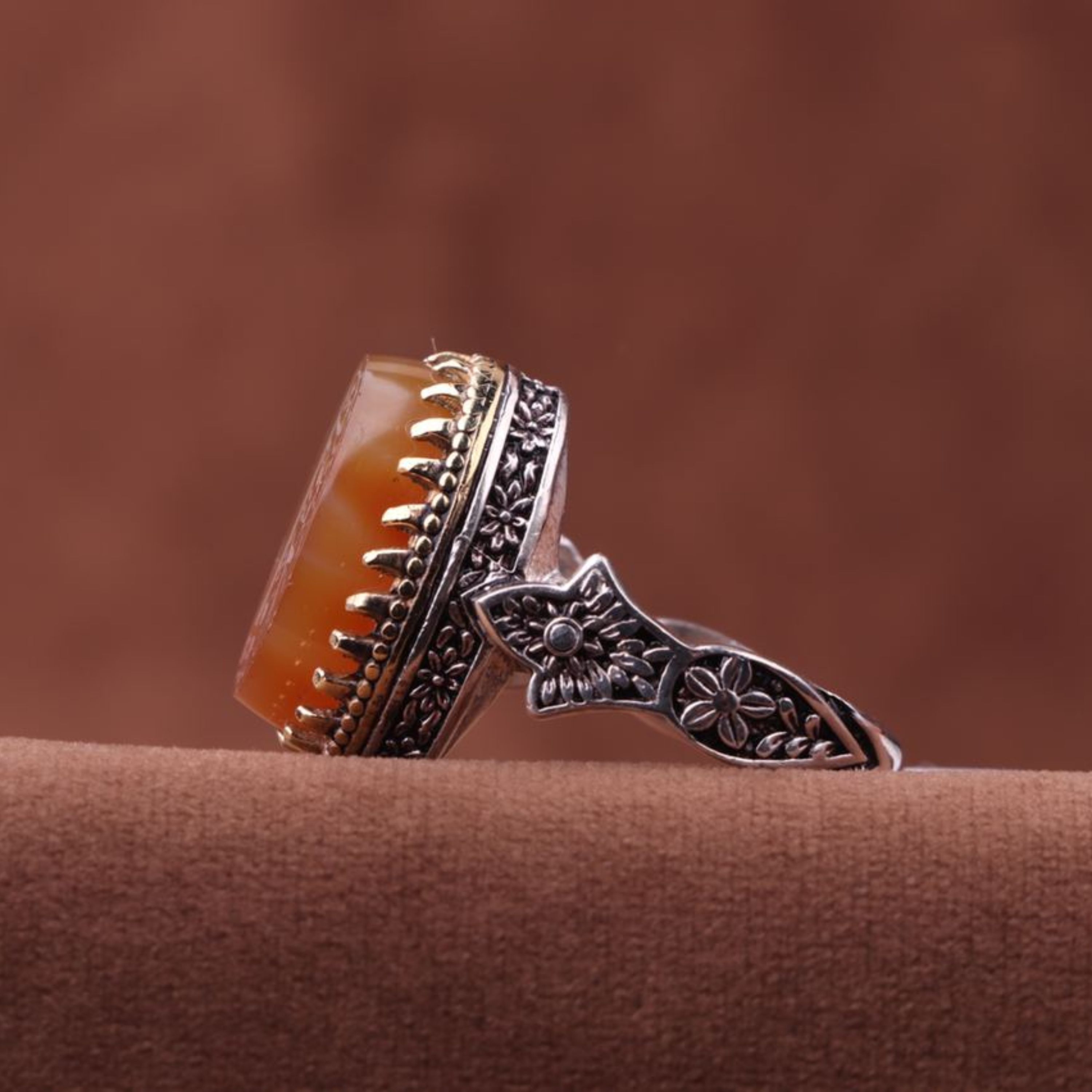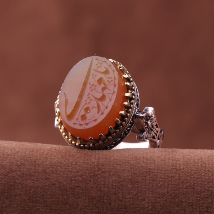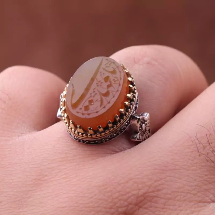 انگشتر عقیق نقش یامهدی رکاب تاج برنجی اصل ( انگشتر مردانه )
