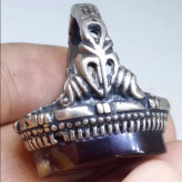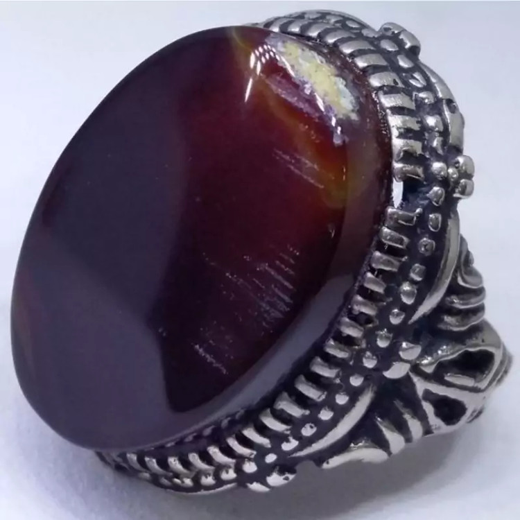 انگشتر نقره مردانه فاخر عقیق کبدی قواره دار یمنی زیبا با رکای نقره عیار متوسط آلیاژ 740 جوندار با وزن کلی 18.67 گرم