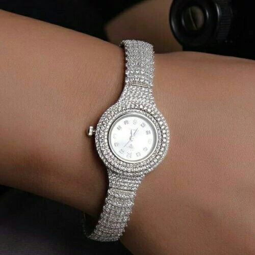 ساعت نقره 925 عیار است با روکش طلا سفید و رودیوم.